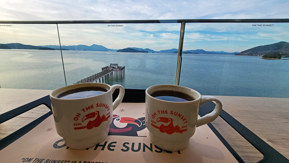 거제식물원을 즐기다 보니 늦은 오후가 되었습니다. 어느듯 제 서식지로 돌아갈 시간입니다. 짧은 나들이 탓에 아쉬움이 가득합니다. 그래서 가까운 일몰 명소를 찾아 봅니다. 그때 '온더선셋'이란 카페가 눈에 들어 옵니다. 늦은 오후에 걸맞는 이름인데다, 마침 통영 방향의 거제대교 가기 전에 위치합니다.