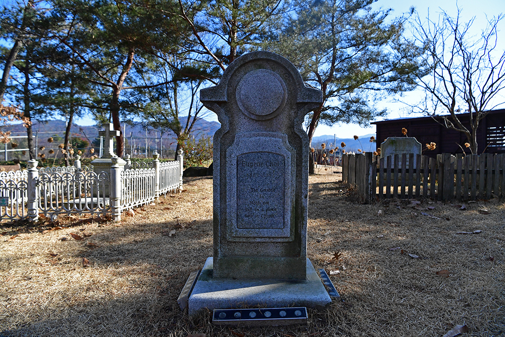 마지막으로 찾은 곳은 '외국인 묘지' 가 있는 '씨유어게인 가든'입니다. 주인공 유진초이의 묘비가 있습니다. 정확한 번역이 맞는지 모르겠지만, '위대하고 고귀한 자! 여기 조선에서 여전히 소풍 중' 이란 글귀가 묘비에 씌여 있습니다. 주인공 유진초이의 죽음이 애절하게 느껴지는 것은, 실제 주인공인 황기안 지사 때문 아닐까요? ㅎ
