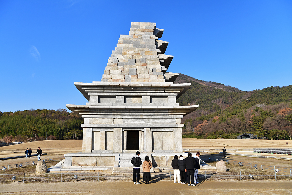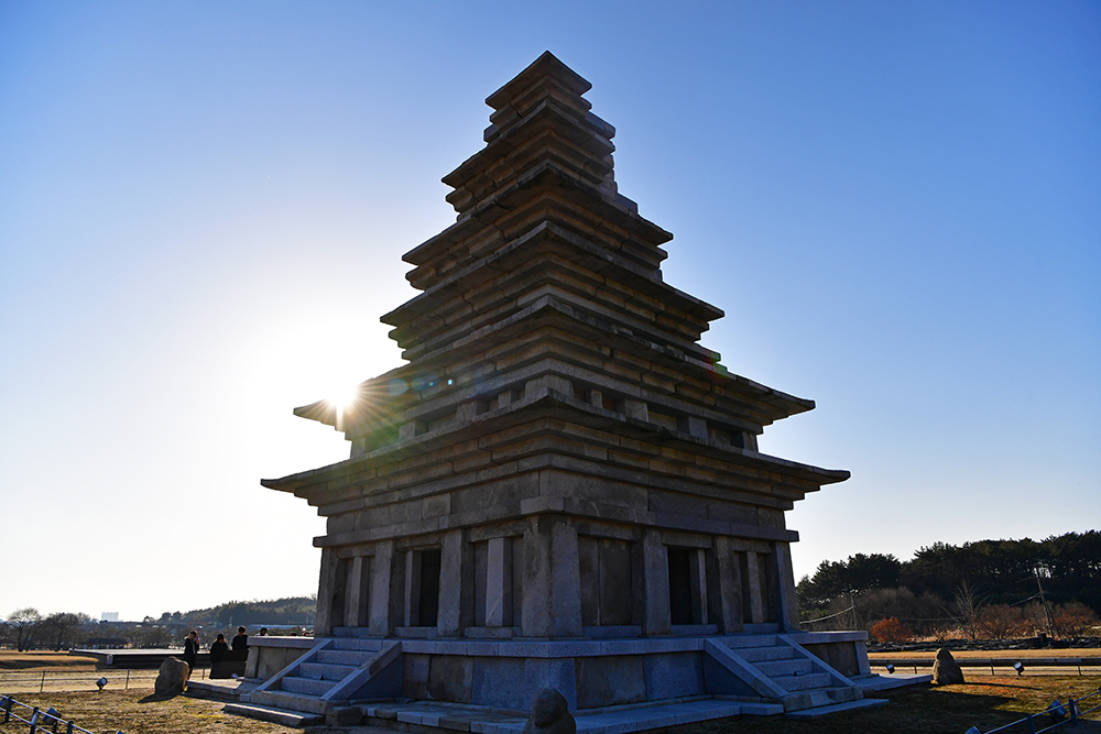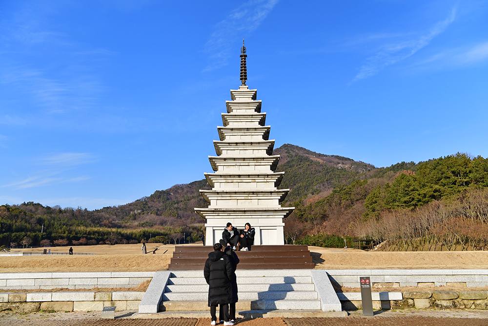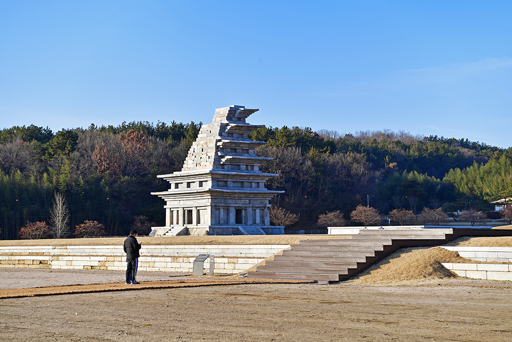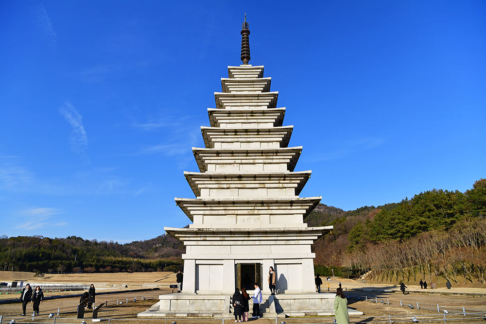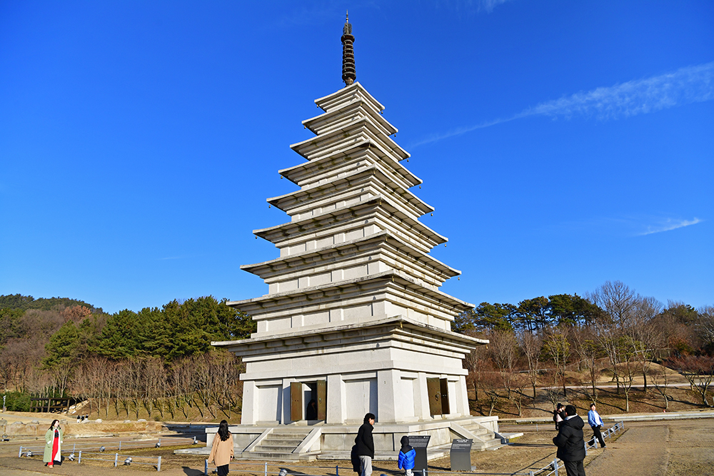 이어서 동원 구층 석탑을 찾았습니다. 당초 동원 석탑은 무너져 흔적만 있었습니다. 동원 탑 터 발굴조사에 나온 석조물을 기초로 하여, 서원 서탑을 참고해 복원한 것입니다. 천천히 사방을 둘러보면 '동원 구층 석탑'의 모습을 즐겨 봅니다.