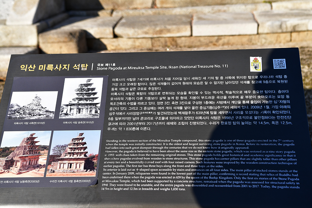 석재가 없어져 원래의 모습은 알 수 없지만, 일부가 허물어진 지금의 형태로도 멋진 기운을 뽐내고 있습니다. 천천히 탑을 둘러보며 미륵사지 석탑의 멋진 모습을 즐겨 봅니다.