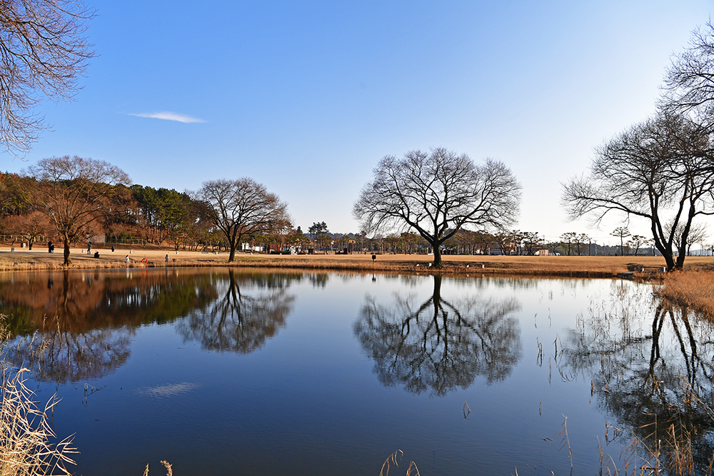 박물관을 지나 미륵사지로 향합니다. 유적지 입구에 큰 연못이 있습니다. 그 곳에 비친 반영이 제법 아름답습니다. 저 멀리 대형 석탑 2개와 당간지주가 보입니다. 좀 휑한 느낌이 있지만, 독특한 분위기에 발걸음이 바빠집니다. ㅎ