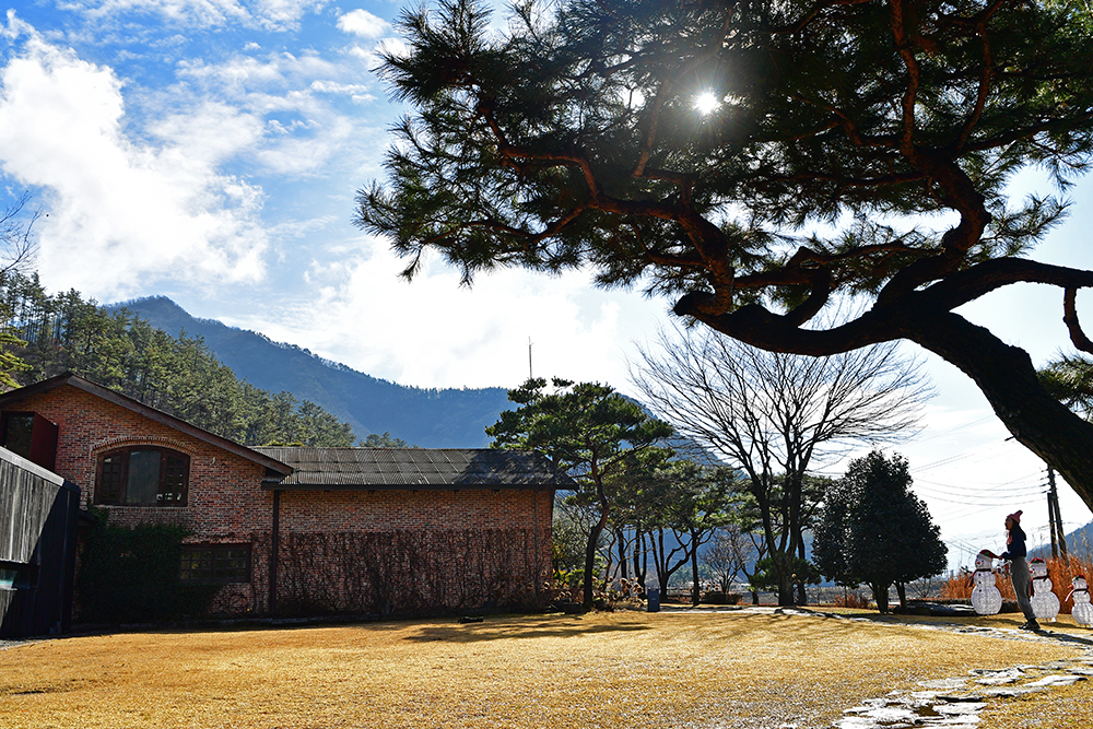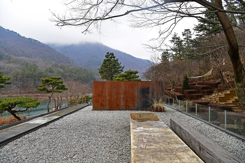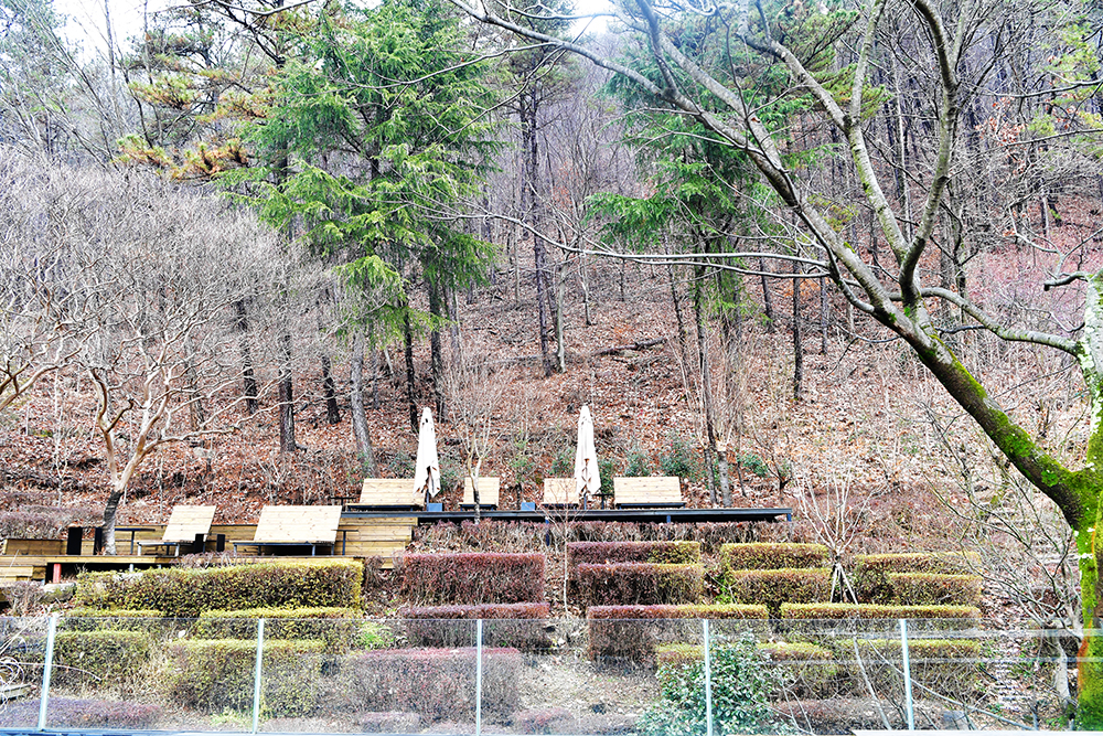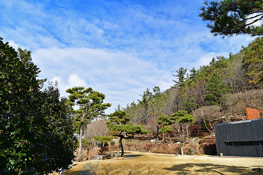 동산으로 발걸음을 옮깁니다. 옥상에서 바로 연결되어 있어 가기 수월합니다. 아름드리 배롱나무 아래에서 오스갤러리카페와 오성제저수지를 바라보며 마음의 평온을 얻어 봅니다. ㅎ