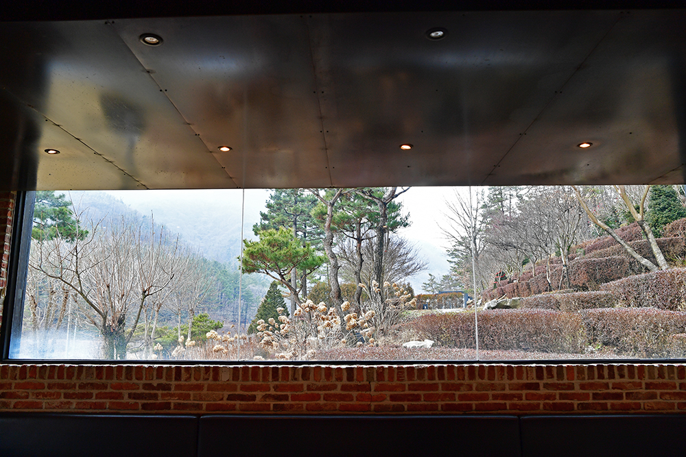 오스 갤러리 카페의 포토존을 찾았습니다. 큰 창 밖으로 보이는 광경이 아주 예쁩니다. 마치 큰 액자에 담긴 그림 같다고 할까요? 큰 창을 통해 보여주는 각기 다른 풍경들이 아주 멋집니다. 맛있는 음료를 마시며 아름다운 풍경에 넋을 놓아봅니다.ㅎ
