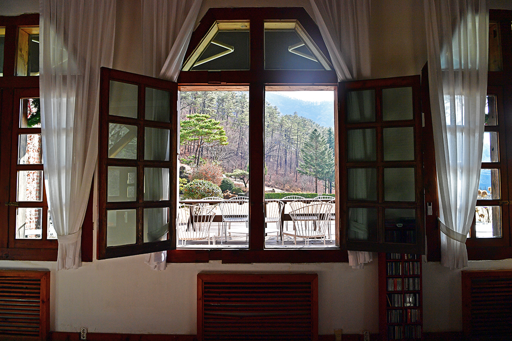 실내로 들어섭니다. 문을 열고 들어서자 멋진 장식이 나타납니다. 대기실은 아닌 것 같은데, 잠시 앉았다 갈 수 있는 곳입니다. 그런데 창 밖으로 보이는 풍경과 실내 장식이 너무 예쁩니다. 여기서는 반드시 사진을 담아야 했습니다. ㅎ