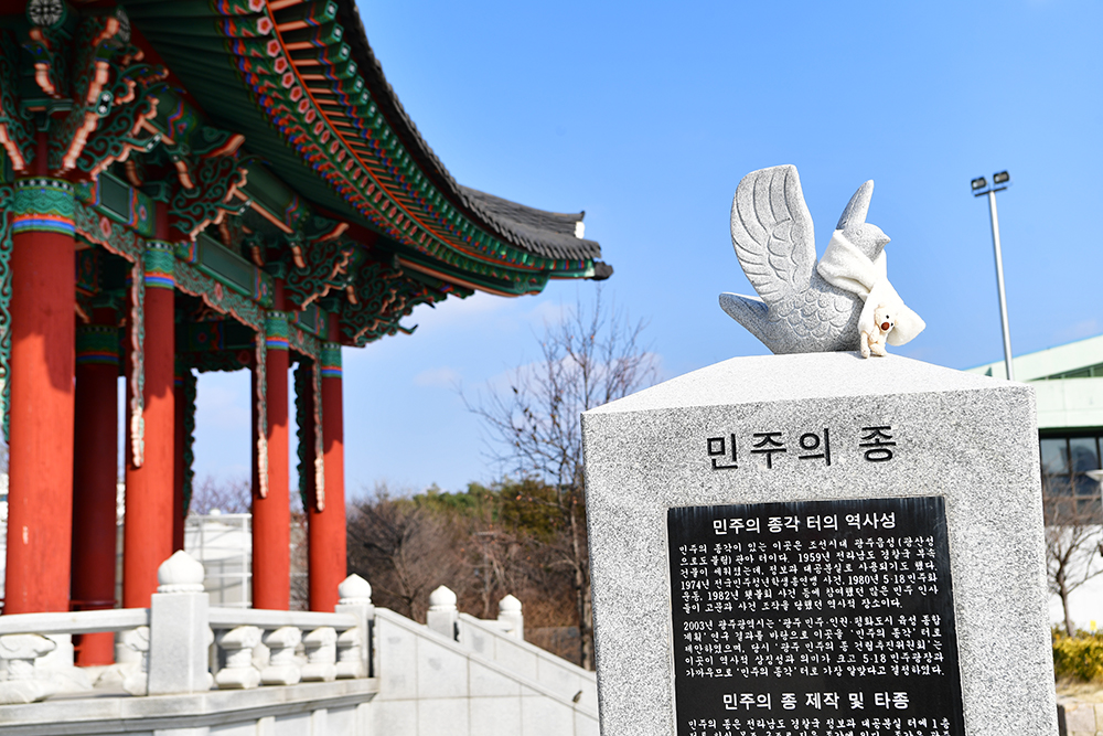 다음으로 찾은 곳은 '민주의 종' 입니다. 경찰국 정보과 대공분실이 있었던 곳입니다. 5.18 민주화운동 당시 많은 민주인사들을 고문하고 사건을 조작을 했던 곳이죠. 그 곳을 허물고 '민주의 종'을 설치한 것입니다.
