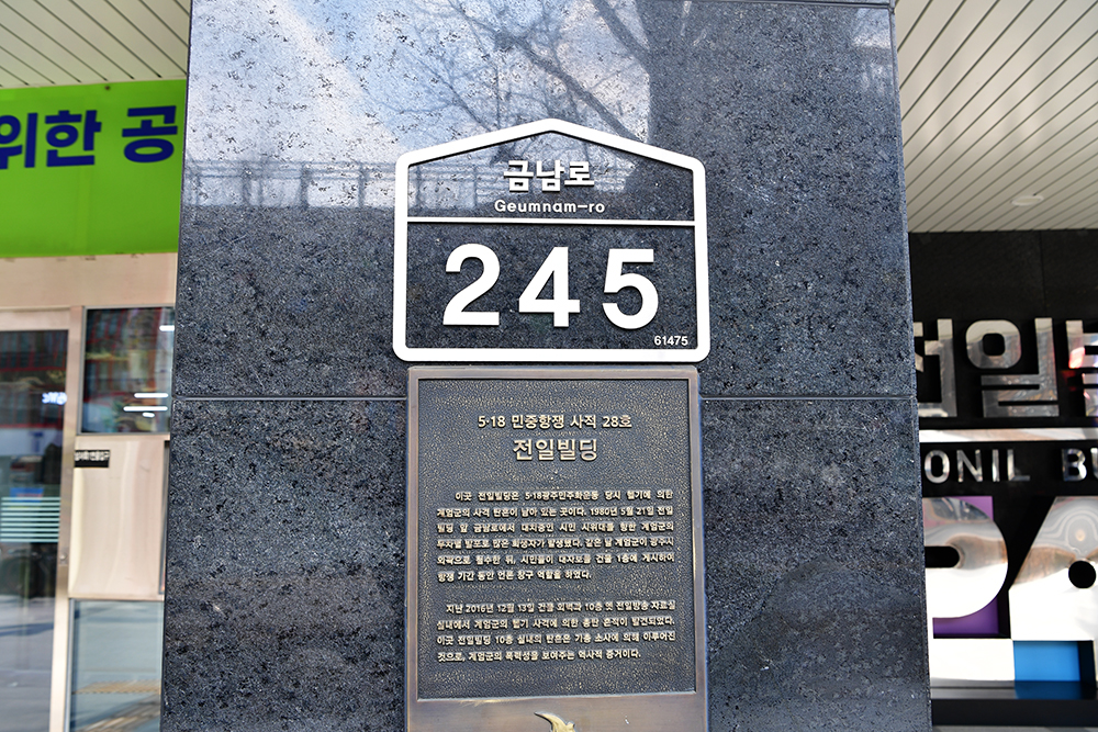 전일빌딩 앞 도로가 '금남로' 입니다. 5.18 광주 민주화운동 당시 치열한 시가전이 있었던 곳입니다. 하지만 지금은 아주 평화로운 모습입니다.