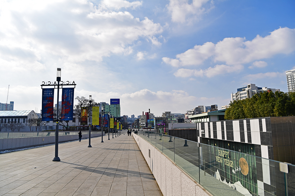 에스컬레이터를 타고 올라오니 하늘마당이 시원스레 펼쳐집니다. 조명시설이 있는 걸 보니, 밤에 보면 더 멋질것 같습니다 .ㅎㅎ