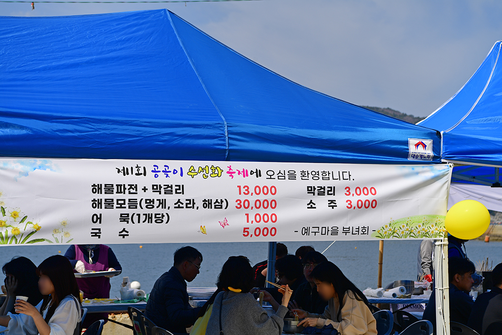 때마침 ‘제1회 공곶이 수선화축제’가 개최되었습니다. 마을분들이 개최하는 축제입니다. 와현해수욕장부터 교통통제를 하고, 셔틀버스도 운행합니다. 하지만 엄청난 인파에 역부족입니다. 할수없이 와현해수욕장에서 예구마을까지 30여분을 걸었습니다. 예구마을에 도착하니, 한창 축제분위기가 무르익고 있습니다. ㅎ