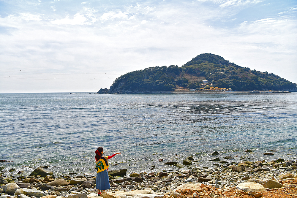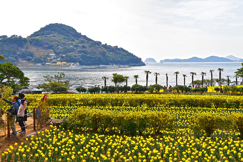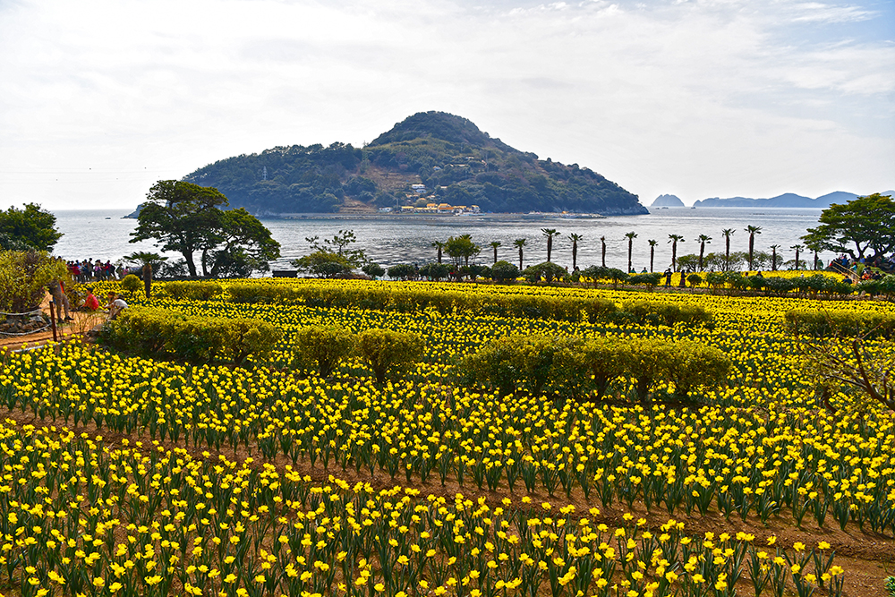 공곶이 바로 앞 바다 건너에 섬이 있습니다. 동백군락지로 유명한 '내도' 입니다. 이 섬을 중심으로 공곶이 수선화를 담는 것이 포인터 입니다. 동백섬 내도와 함께 노란 물결 넘실 거리는 수선화를 담아 봅니다. 바로 이것이 기대했던 공곶이의 모습입니다. ㅎㅎ