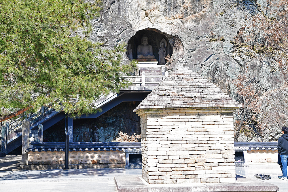 제2석굴암에 들어섭니다. 멀리 석굴이 봅입니다. 천천히 걸으며 범종각과 공덕비, 종무소를 살펴봅니다. 범종각은 일반인은 접근할 수없게 통제중입니다. 아마도 스님들의 수양공간인듯 합니다. ㅎ