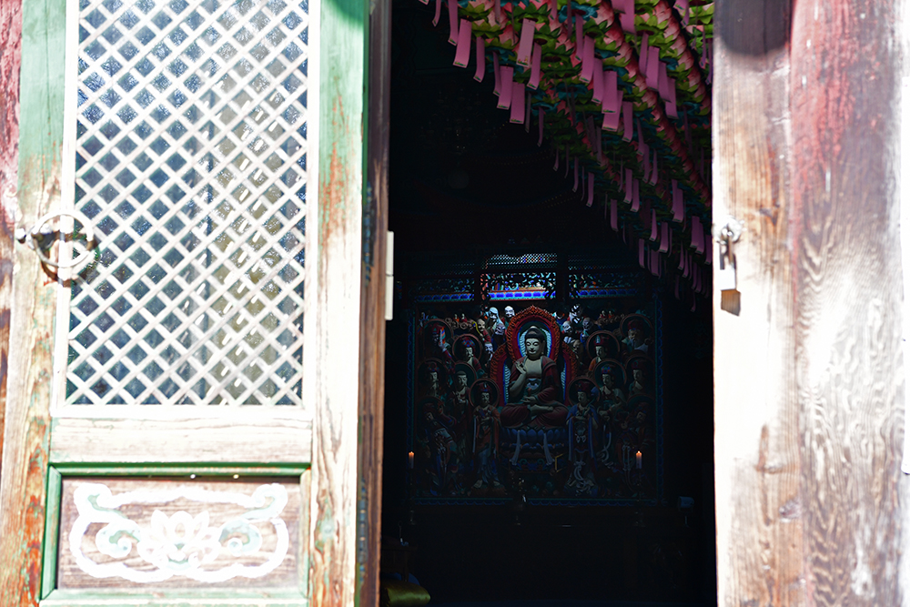 예전에는 삼존석굴 내부를 관람할 수 있었지만, 최근에는 보존을 위해 밖에서만 볼수 있습니다. 가까이서 볼수없어 못내 아쉽지만, 밖에서 최대한 줌으로 당겨서 삼존석굴을 뵙습니다. 이럴때는 '망원렌즈를 가져올걸' 하는 후회가 든답니다.ㅠㅠ