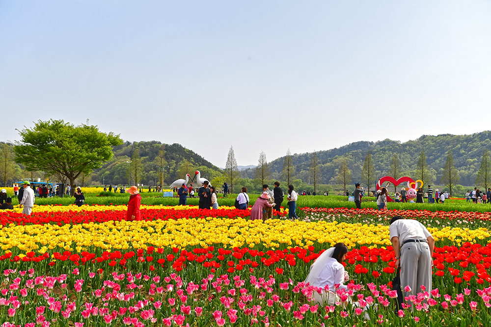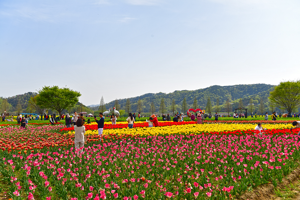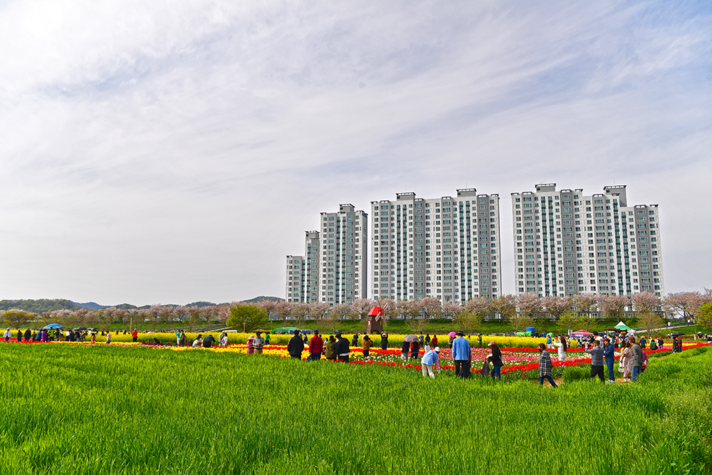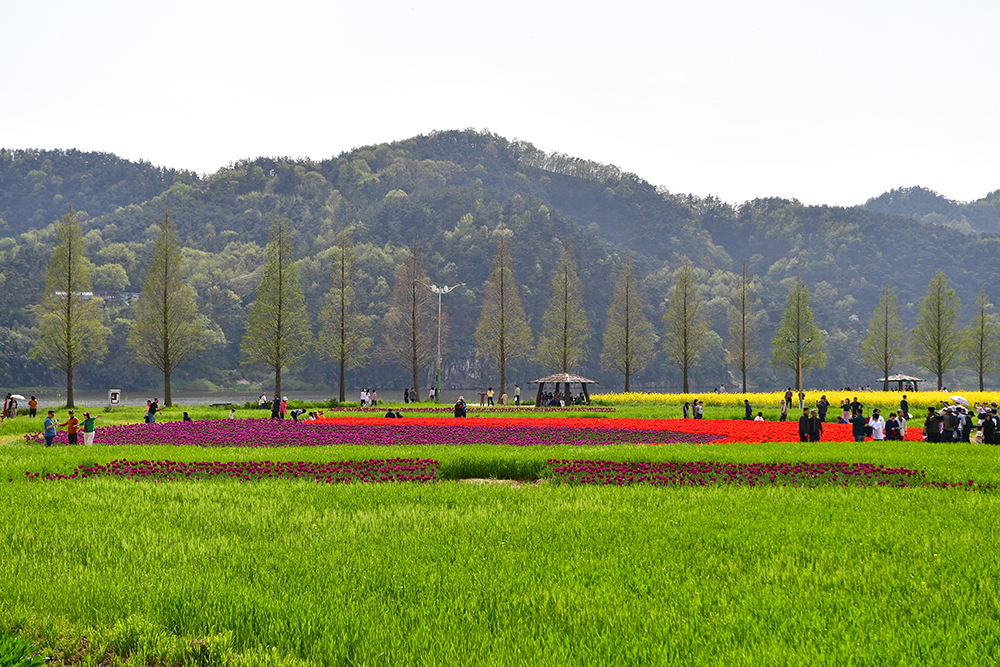 이어서 찾은 곳은 '태극기 정원' 입니다. 예쁜 튜울립으로 태극기 모양의 정원을 만든 곳입니다. 붉은 색과 진보라색 튜율립으로 태극과 건곤감리를 표현했습니다. 나름 의미있는 멋진 공간 입니다. 다만 태극기의 정확한 모습을 즐기기에는 좀 어려웠습니다. ㅜㅜ