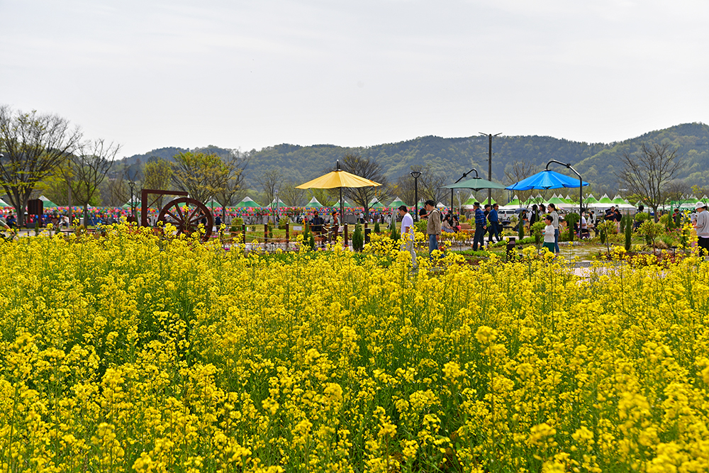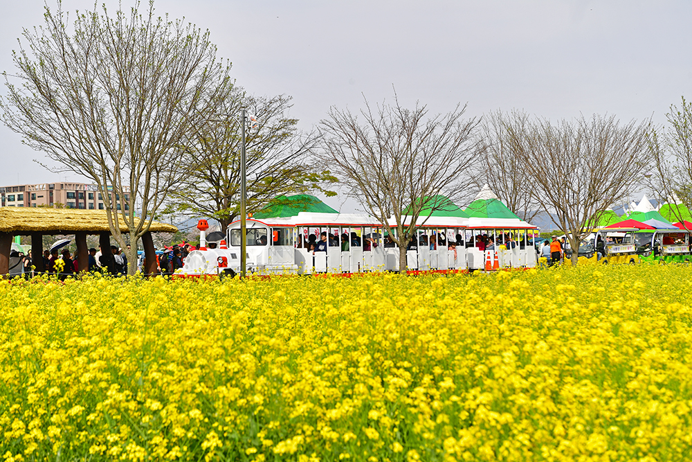 축제장에 들어서니, 각종 부스가 성업 중입니다. 각 부스마다 사람들로 넘쳐납니다. '좀 한적하겠지?' 했던 생각은 여지없이 깨졌습니다. 유채밭 입구에서 전경을 살펴본 후 얼른 유채꽃 단치 안으로 들어갑니다.