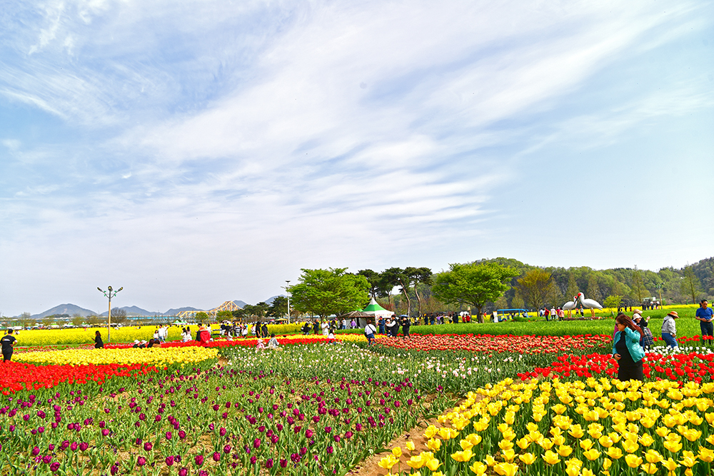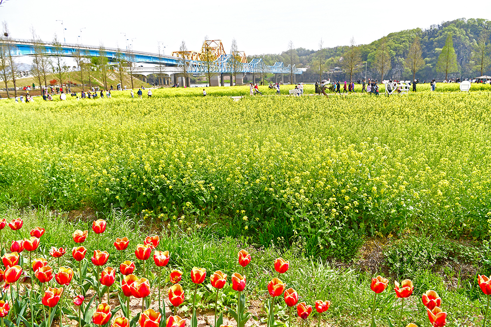 경남 합천의 신소양 체육공원에 있는 핑크뮬리 동산이 생각납니다. 광활한 유채꽃 단지에 합천같은 작은 동산이 있었다면, 그곳에 올라 태극기 정원과 한반도 정원의 멋진 모습을 제대로 즐겼을 것 같습니다. 창녕 낙동강유채축제장은 지금 매우 아름답습니다. 비록 튜울립 꽃이 약간 지고 있지만, 유채꽃은 더 없이 절정입니다. 이 곳에서 전국 최대규모의 노란 유채꽃 물결을 즐겨 보시기 바랍니다. ㅎ