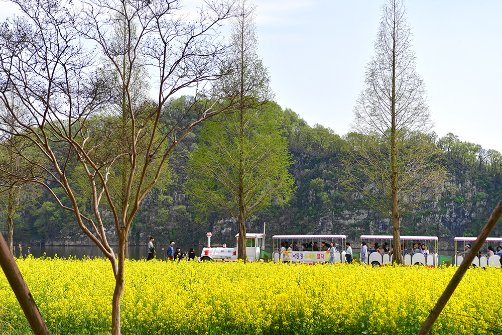 유채밭을 걷는데, 유채밭 사이를 달리는 열차가 보입니다. '낙동강 유채꽃 열차'입니다. 재밌겠다 싶어 타보기로 했습니다. 요금은 성인 1인당 6천원입니다. 그런데 40분이상 대기해야 했습니다. 한 바퀴 운행하는데 대략 15분 정도 걸린 것 같은데, 나름 재밌습니다. ㅎ