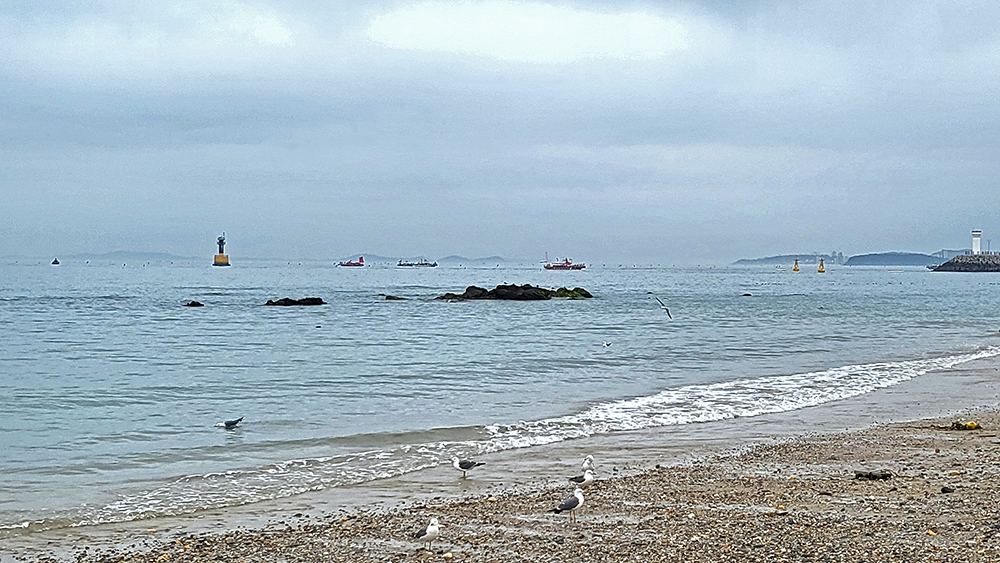 원기를 보충하고 식당을 나왔습니다. 이어서 신비의 바닷길을 걷기 위해 해변으로 나갔습니다. 그런데... 어느새 바닷물이 들어 바닷길이 사라졌습니다. ㅜ 할 수없이 해수욕장을 거닐며 무창포 해수욕장의 분위기를 즐겨 봅니다.