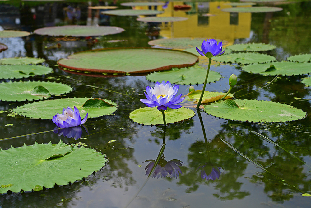 수련을 한참 즐기고 있는데 마침 '호주 수련'이란 안내판이 눈에 띕니다, 어떤 아이들일까 살펴 봅니다. 파란색 꽃잎이 하얀 꽃잎을 감싸는 모습이 참 아름답습니다. ㅎ