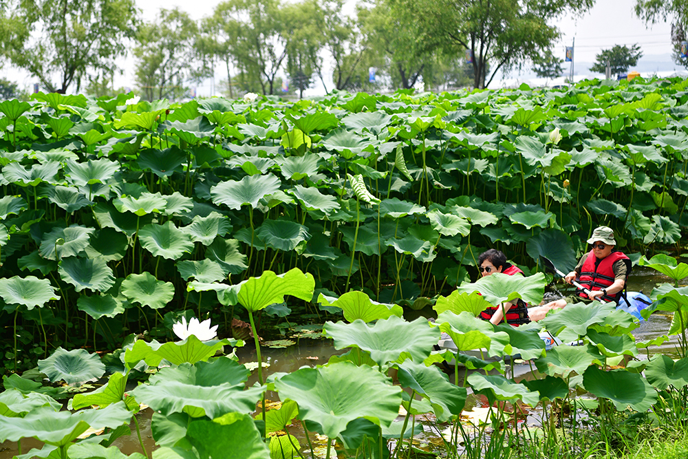연꽃 단지 한 곳에서 보트 체험을 합니다. 물로 유료 체험입니다. 보트로 타고 연꽃밭을 다닐수 있습니다. 나름 재밌고 색다른 체험이 될 것 같습니다. ㅎ