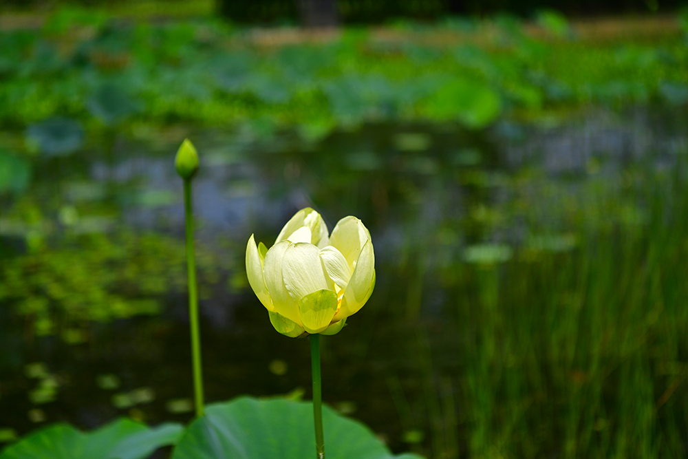 이어서 특이한 연꽃을 발견합니다. 노란색 연꽃인데, 안내판을 보니 황금연과 황연 입니다. 비슷한 모습인데, 꽃 크기에서 차이가 나는듯 합니다. 일단은 황금색 노란 연꽃의 모습을 즐겨 봅니다. ㅎㅎ
