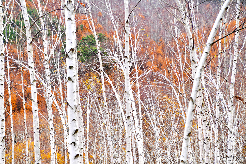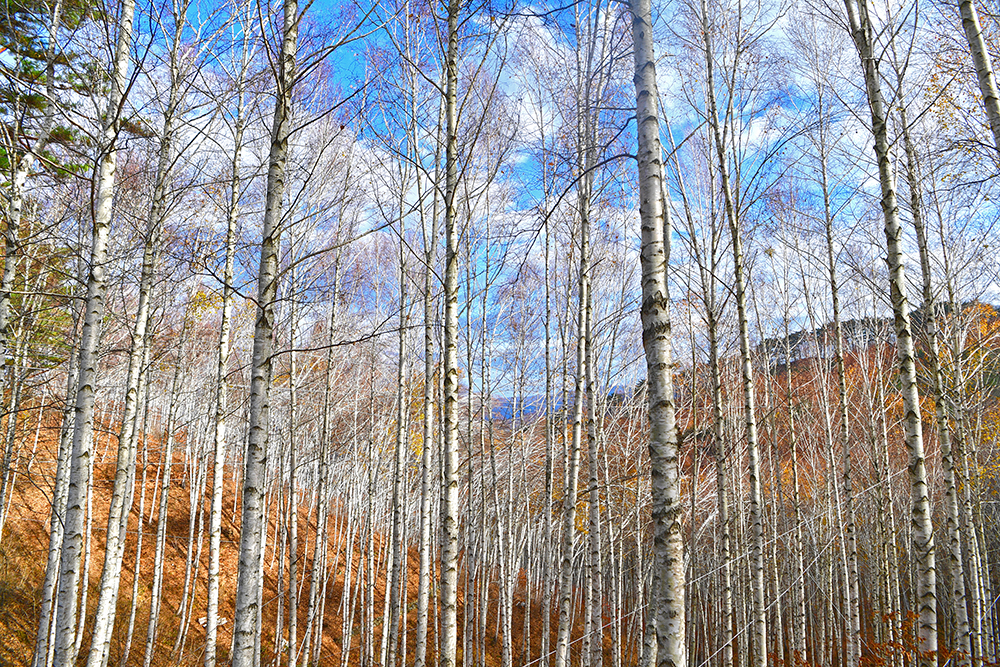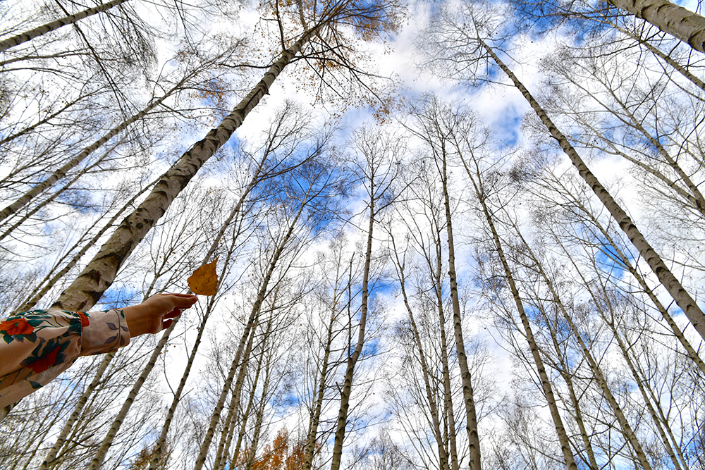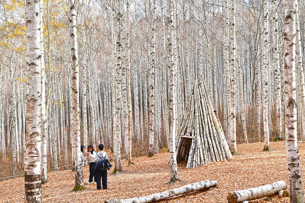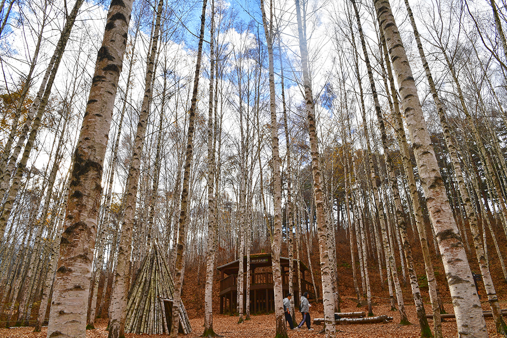 자작나무 숲 전망대에 도착했습니다. 전망대에서 보니, 20년 이상 되는 자작나무가 빽빽하게 들어찬 숲이 펼쳐집니다. 하얀 줄기와 잎이 빛나는 모습이 마치 눈이 내린 것처럼 보입니다. 울긋불긋 물든 낙역송과 하늘을 향해 뻗은 하얀 자작나무 숲이 이국적인 풍취를 느끼게 합니다. ㅎ