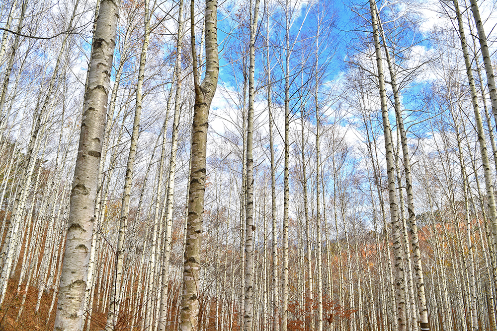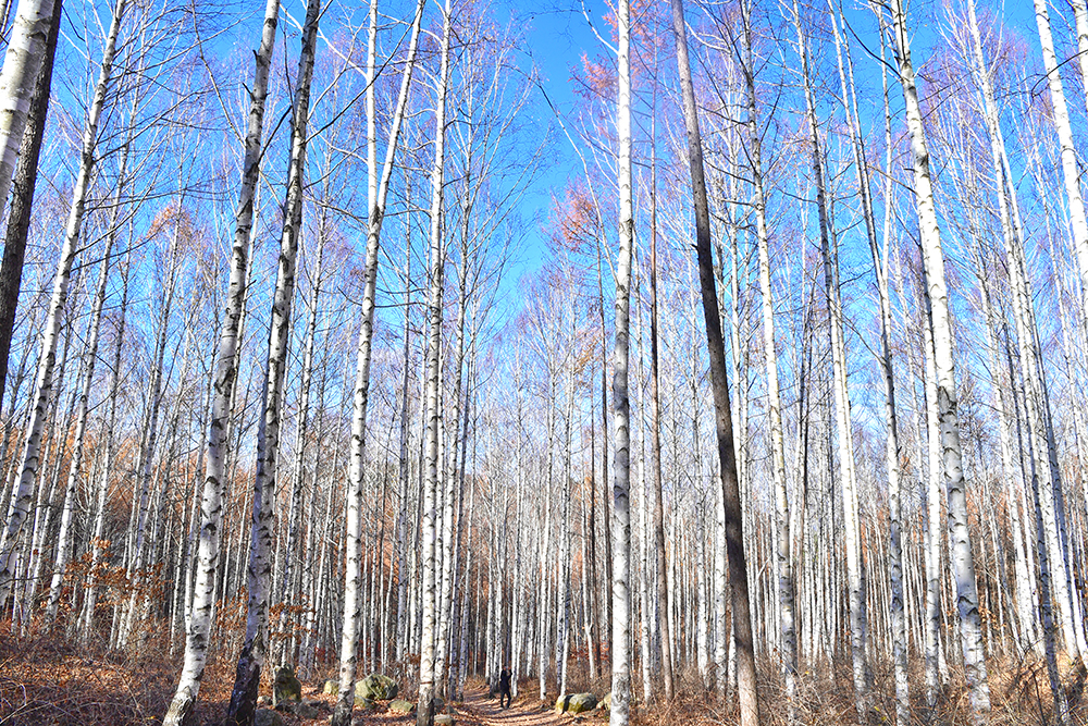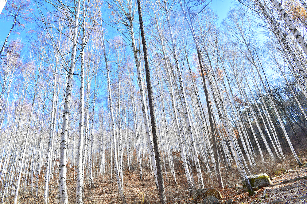 자작나무 숲을 헤매고 있는데, 어느덧 달맞이 숲 방향으로 발걸음이 옮겨지고 있습니다. 하늘 높이 쭉쭉 자라고 있는 자작나무가 아주 인상적입니다. 때마침 파란 하늘이 열려 더욱 아름답습니다. ㅎ