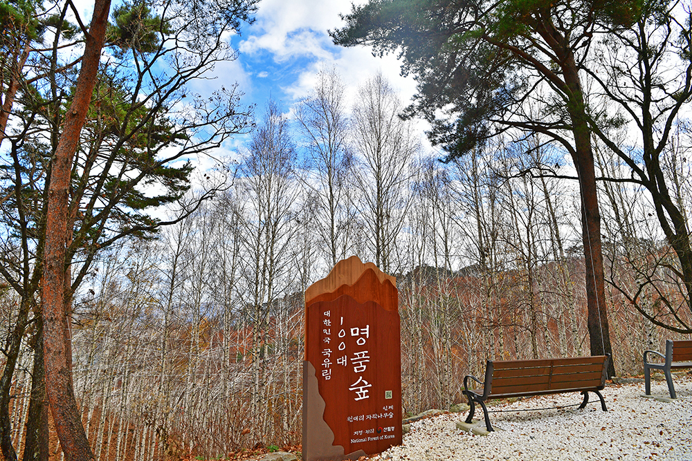 전망대에서 자작나무 숲을 조망한 후 정상안내소에 도착했습니다. 강원도 인제의 원대리 자작나무 숲은 1989년부터 조성된 인공림이자, ' 속삭이는 자작나무 숲'이라고 부르는 자연 생태관광지입니다. 약 138헥타르의 넓은 면적에 70만 그루의 자작나무가 자라고 있습니다. 그 중 6헥타르 규모의 별바라가 숲은 '자작나무 명품숲'으로 지정하관리중인데요, 무려 40만그루가 밀집해 있다고 합니다.