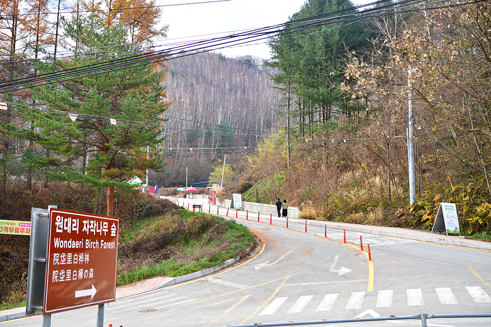 주차장 앞 도로를 건너면 ‘원대리 자작나무 숲’을 알리는 이정표와 ‘자작나무숲 입산안내판’이 있습니다. 하절기는 15시까지, 동절기는 14시까지 입산 가능합니다. 매주 월, 화요일은 휴무일입니다 . 산불조심 기간인 3. 2 ~ 4.20일까지는 입산 통제 기간이니, 모르고 오신다면 낭패 볼 수 있으니 꼭 참고하셔야 합니다.