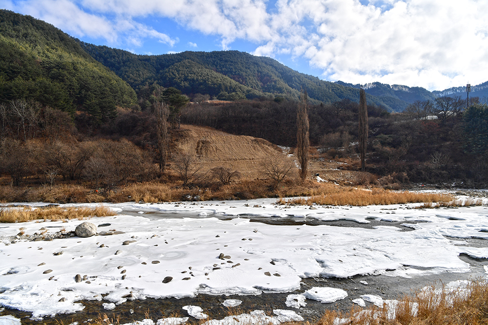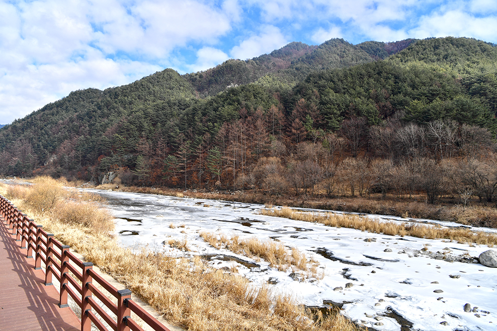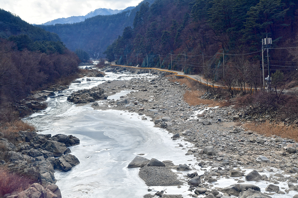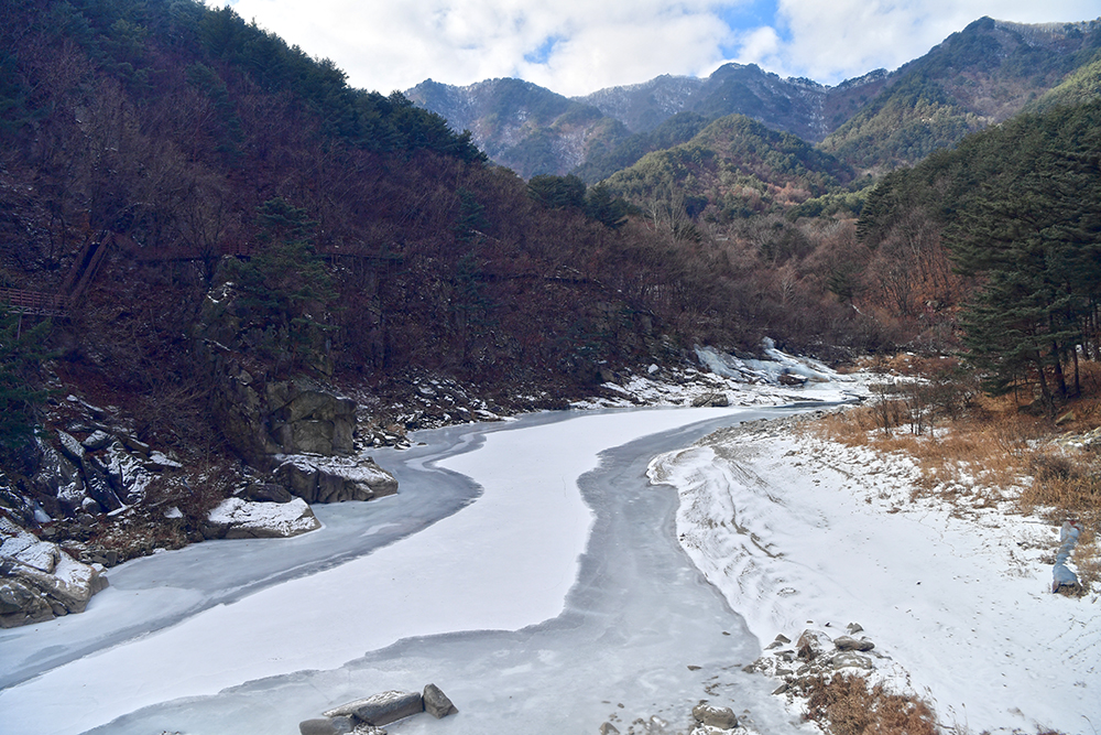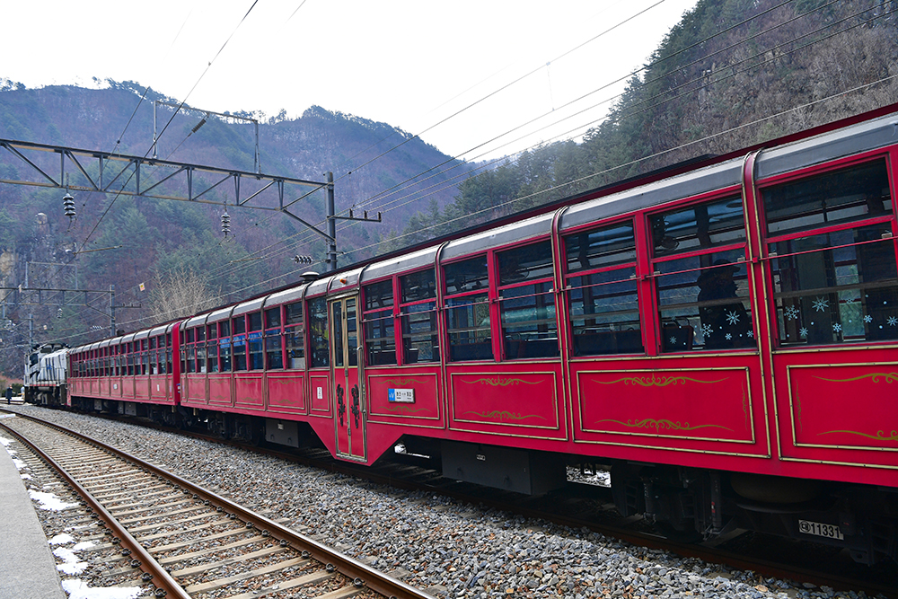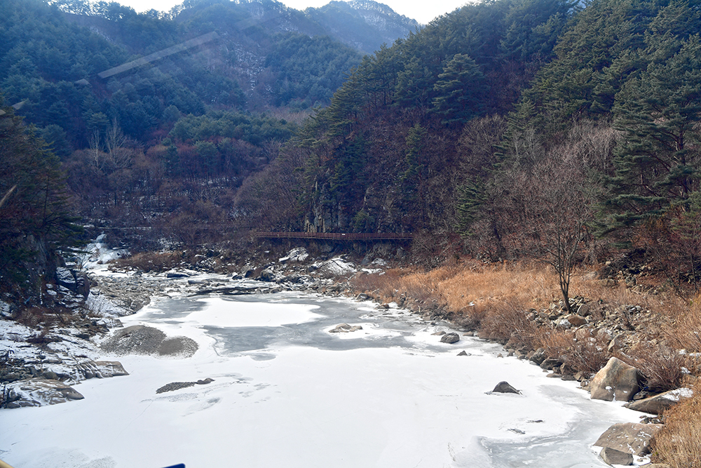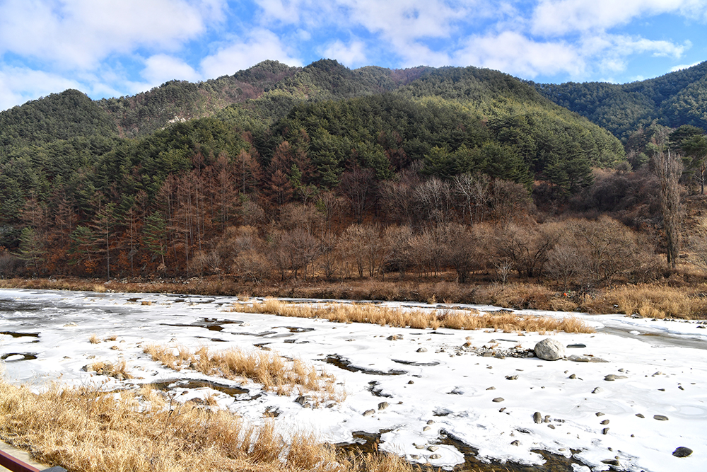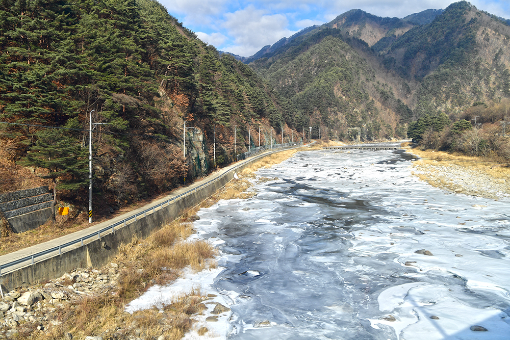그런 낮설음도 잠시! 본격적으로 열차가 달리면서 보여주는 풍경은 정말 아름답습니다. 이래서 백두대간 협곡열차라고 하나 봅니다. 게다가 꽁꽁얼어붙은 강물과 어우러진 산세는 이곳이 추운 지역임이 실감납니다.ㅎ