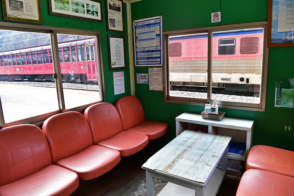 승부역에 정차한 열차는 대략 8분여를 쉬어갑니다. 그동안 열차와 함께 다양한 사진을 찍을수 있습니다. 특히 열차 앞에 올라 사진을 담을 수있습니다. 선로와 열차와 함께 촬영할 수 있는데, 나름 코레일 측의 '깨알서비스'입니다. ㅎ
