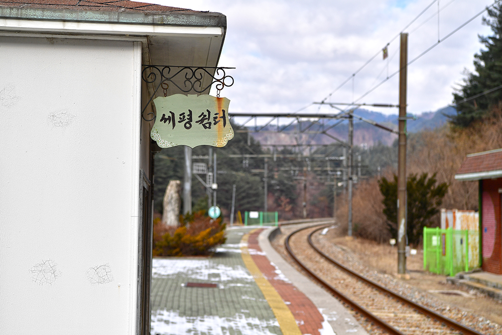 이어서 세평쉼터 주변을 살펴봅니다. 쉼터와 승부역을 함께 담아 보니, 영락없는 시골역입니다. ㅎ 세평쉼터에 들어가 봅니다. 정말 세평도 되지 않을 작은 크기입니다. 그속에 있는 액자를 잠시 바라보며, 예전의 승부역을 상상해 봅니다. 이때!! 승차를 알리는 호루라기 소리가 들립니다. 얼른 뛰어가야 합니다. ㅎㅎ