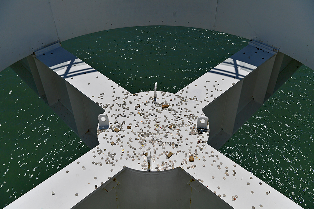 스카이워크 끝자락에 이르니 둥근 원형 구조물이 눈에 들어옵니다. '저건 뭘까?' 하고 가까이 가보니, 그 안에는 사람들이 던져놓은 동전들로 가득합니다. 바다에 떨어지지않고 원 안에 들어가면 소원이 이루진다는 재밌는 전설(?)이 있나 봅니다.? ㅋ 스카이워크 위에서 사방으로 펼쳐진 바다 풍경을 즐긴 후 발걸음을 되돌렸습니다.