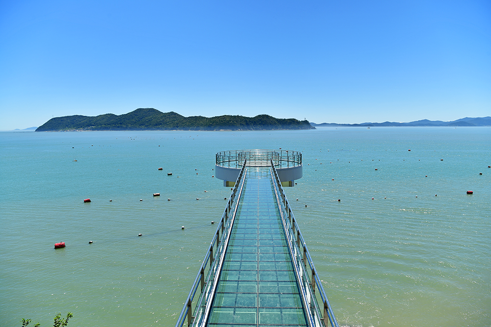 약 5분 정도 걸었을까? 기사에서 보았던 스카이워크가 눈앞에 펼쳐집니다. '23년 9월에 조성된 스카이워크는 육지에서 바다쪽으로 길이 41m 뻗어 있으며, 높이는 18m에 달합니다. 전 구간이 직선형 강화유리로 되어 있어, 발 아래로 파도가 출렁이는 모습이 그대로 보입니다. 먼저 탁 트인 바다를 배경으로 스카이워크 전경을 천천히 즐겨 봅니다. ㅎ