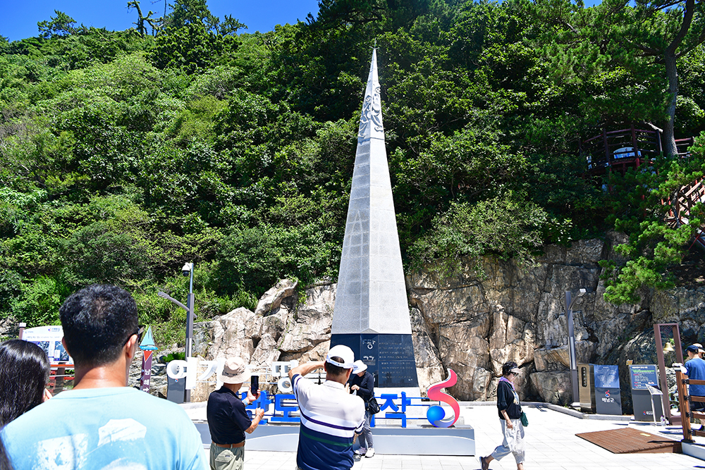 나무데크길을 따라 천천히 걷습니다. 길 끝에는 땅끝 탑이 모습을 드러내고, 걸음을 옮길 때마다 푸른 바다가 시원하게 펼쳐집니다. 땅끝탑을 향해 발걸음을 옮기면서, 탁 트인 바다 풍경도 함께 즐겨 봅니다. ㅎ