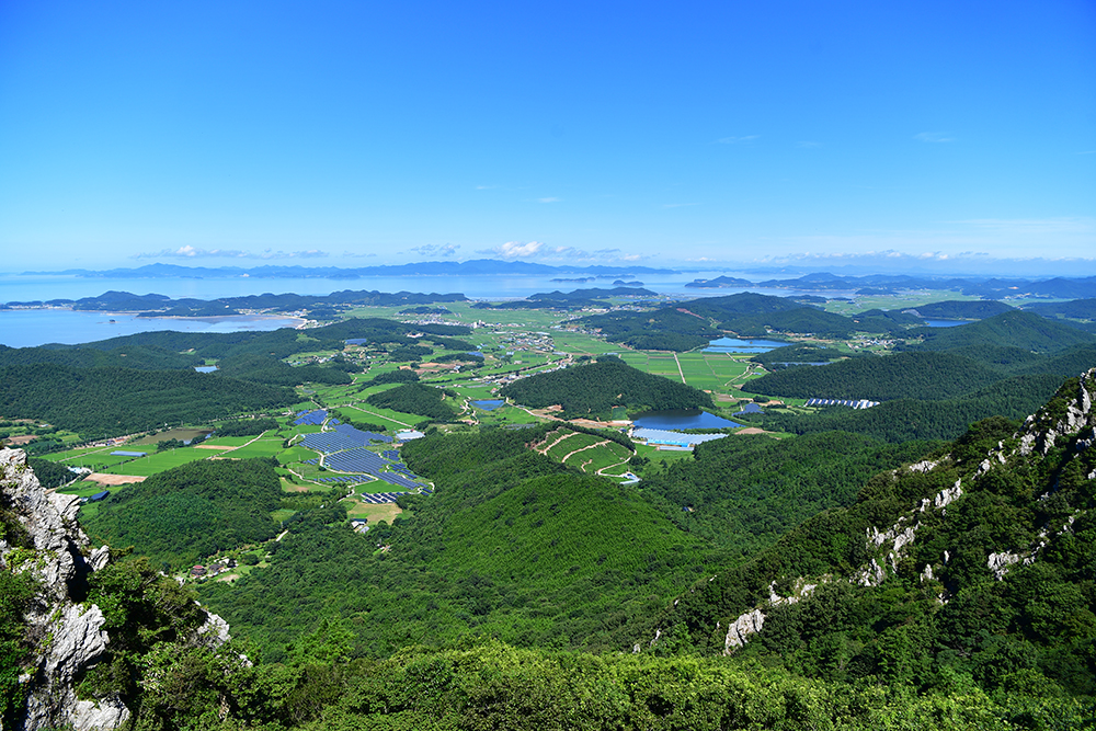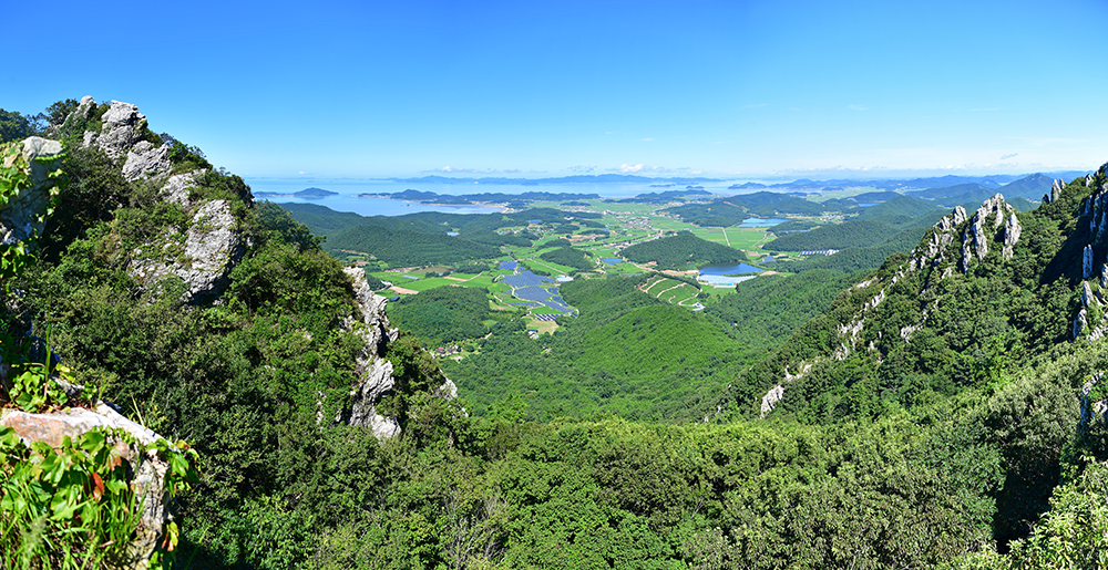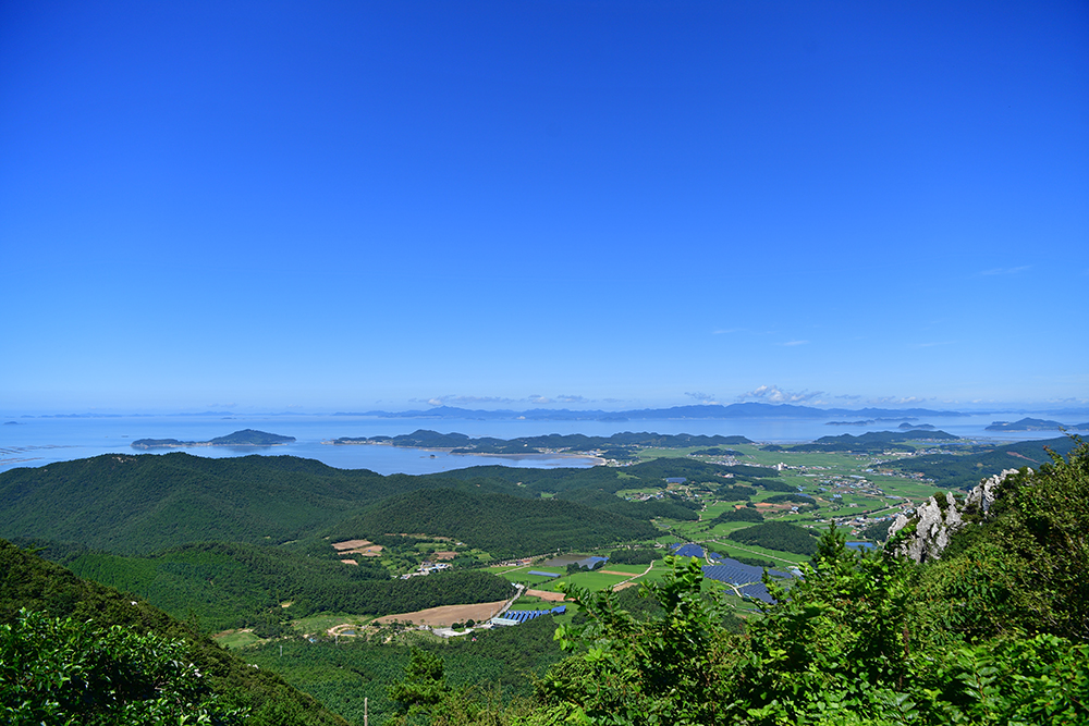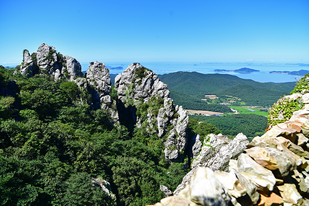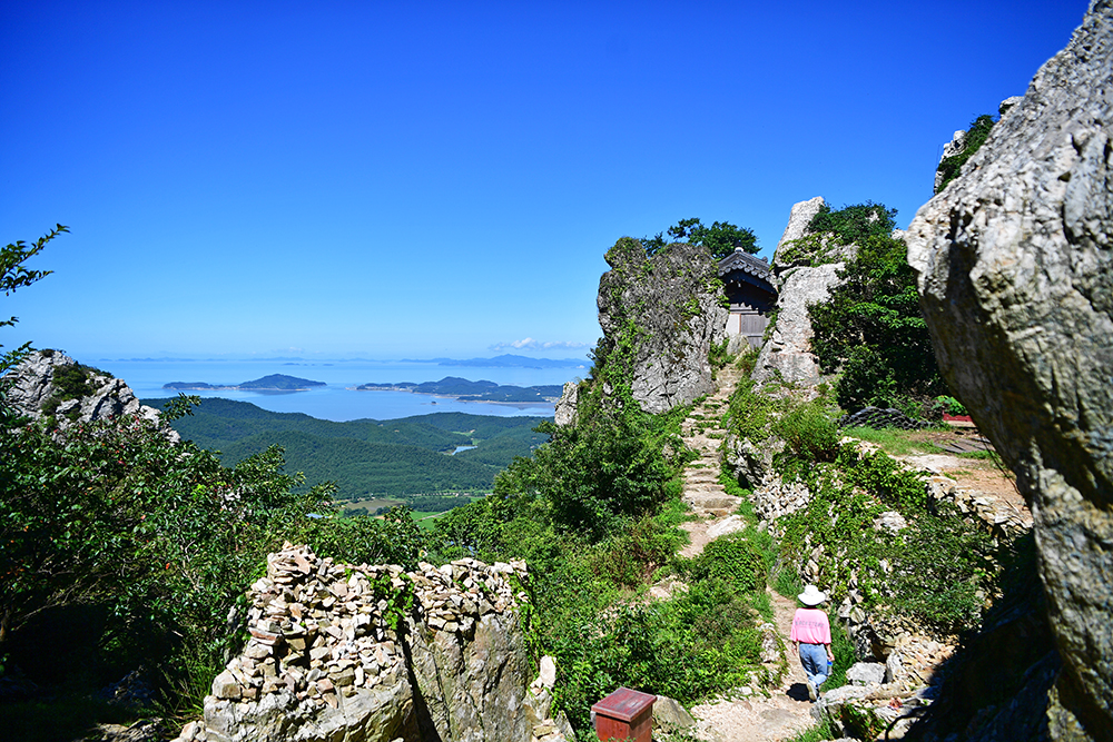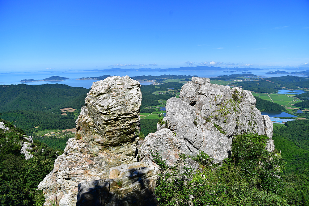 등산로를 따라 걷다보면 기암괴석 사이로 아름다운 다도해의 풍경이 시원하게 펼쳐집니다. 마치 자연의 직접 그려내 한폭의 산수화를 보는 듯 합니다. 푸른 바다와 어우러진 탁트인 전망에 가슴이 절로 시원해지니, 발걸음마저 한결 가볍습니다.