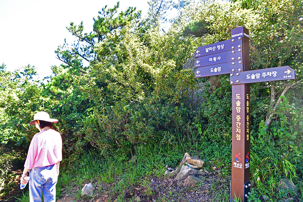 달마산 도솔암에 오르는 길은 두 가지가 있습니다. 미황사에서 시작되는 달마고도(약 5km) 코스와 도솔암 공영 주차장에서 출발하는 짧은 등산로(약 800m) 입니다. 저는 도솔암 주차장 코스를 택했습니다. 땅끝마을에서 도솔암 주차장까지는 차로 30여분 정도 걸립니다. 다만 주자장으로 오르는 길은 폭이 좁고 경사가 심해 차량 교행이 쉽지않습니다. 게다가 주차공간도 5~6대 정도 밖에 되지않아, 갓길을 이용해야 하는 불편함이 있습니다.