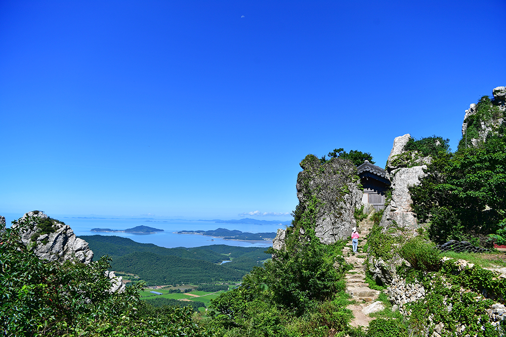 삼성각을 마지막으로 등산로를 따라 돌아왔습니다. 올라 갈때는 기암절벽과 어우러진 아름다운 풍경에 시선이 머물렀지만, 내려올때는 푸른 바다 위로 떠있는 섬들과 갯벌의 고즈넉한 모습을 즐겼습니다. 오르내릴 때마다 달라지는 풍경 덕분에, 같은 길이지만 전혀 다른 매력을 느낄수 있었습니다. ㅎ