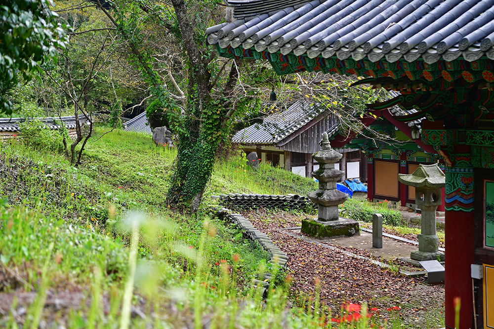 대웅보전 왼쪽 계단을 오르면 산신각이 자리합니다. 여름철, 붉게 핀 배롱나무가 아름다운 풍경을 자아냈지만, 지금은 꽃무릇이 그 자리를 대신해 붉은 빛을 더 합니다. 배롱나무와 꽃무릇이 함께 어우러진 산신각의 풍경을 카메라에 담으며, 계절이 바꿔 그려내는 또 다른 멋을 즐겨봅니다