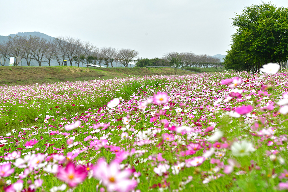 올해 추석 연휴가 시작되면, 아름다운 가을꽃들이 하나둘 피어납니다. 가을의 상징인 코스모스를 비롯해 분홍빛이 고운 핑크뮬리와 붉게 물든 댑싸리, 그리고 향기로운 아스타국화까지—이제는 빠질 수 없는 가을의 대표 꽃들입니다. 이런 매력적인 가을꽃들을 한 자리에서 즐길 수 있는 곳이 바로 경남 의령의 '호국의병의 숲 친수공원' 입니다. 기강나루로 불리는 곳이기도 하죠.ㅎ