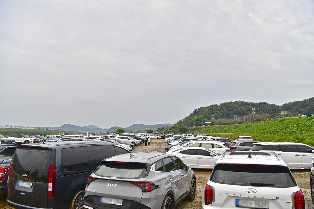 마침 이곳은 처가로 가는 길목에 있어 자주 들르곤 했지만, 지난해에는 방문하지 못했습니다. 비록 흐린 날씨였지만, 올해는 긴 연휴 덕분에 여유롭게 다시 찾을 수 있었습니다. 호국의병의 숲이 가까워지자 안내원이 차량을 통제합니다. 그 사이 외곽에는 새 주차장이 조성되어 있었습니다. 안내원의 안내에 따라 주차장으로 들어서니 이미 많은 차량들이 즐비하게 들어서 있었습니다.