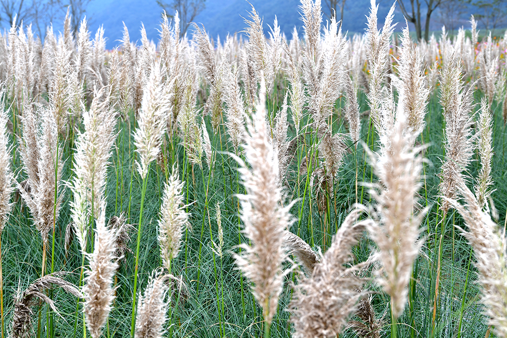 이윽고 팜파스 군락지에 도착했습니다. 새벽에 내린 비 때문인지, 팜파스가 활짝 열리지 않았습니다. 다소 아쉬운 모이었지만, 오히려 그 독특한 분위기가 매력적으로 다가왔습니다. 서양 갈대라는 팜파스가 가을 풍경과 잘 어울리는 식물임을 새삼 느낄 수 있었습니다.