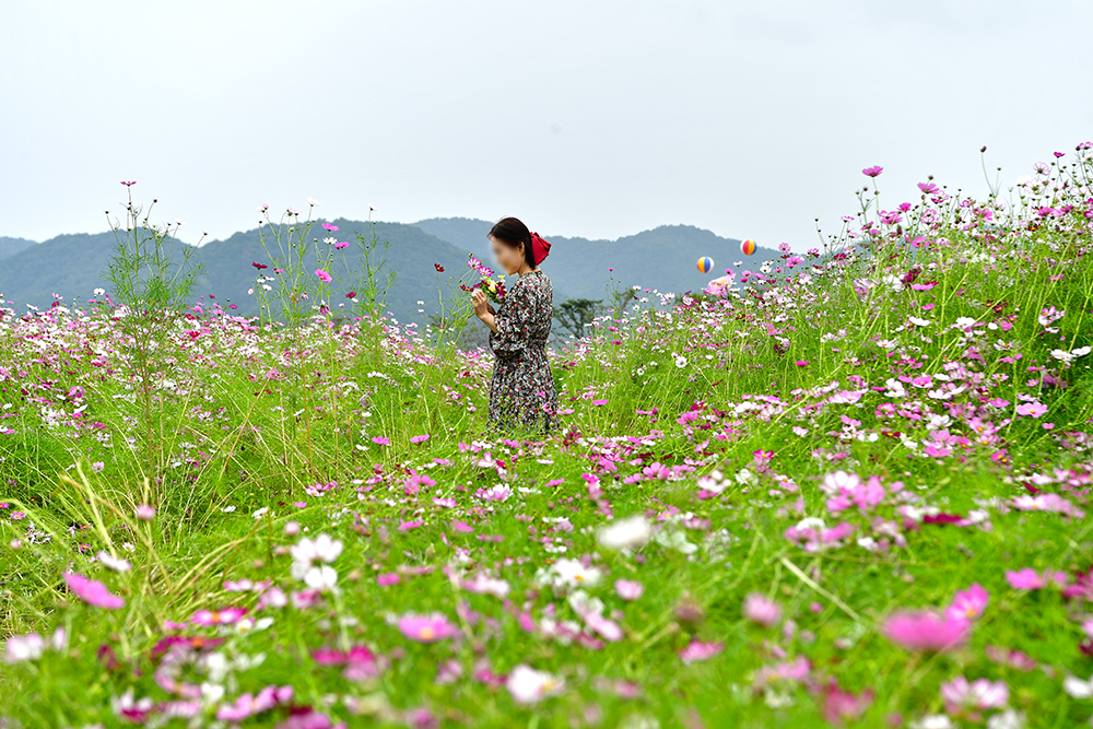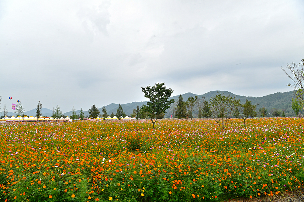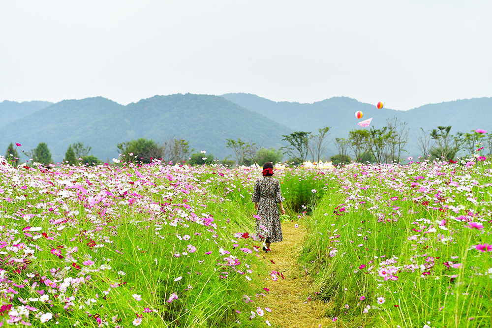 이어서 코스모스 군락지로 향합니다. 군락지 안으로 들어서니, 사람을 찾기 힘들 정도로 코스모스가 자라 있습니다. 줄기 높이가 사람 키만큼이나 커서 마치 꽃숲 속을 걷는 듯한 기분이 듭니다. 누가 뭐래도 가을의 주인공은 단연 코스모스죠. 전속 모델과 함께 흔들리는 코스모스 사이를 거닐며, 가을의 낭만을 한껏 즐겨봅니다.