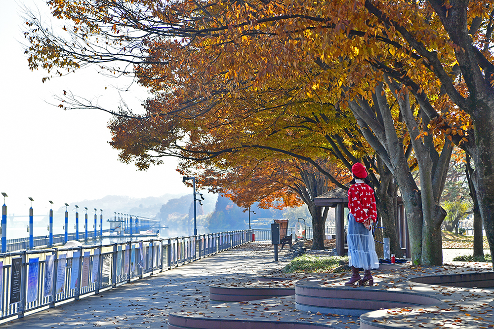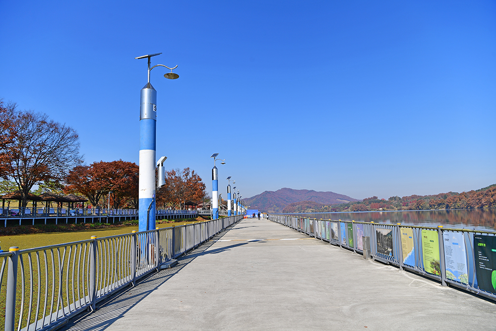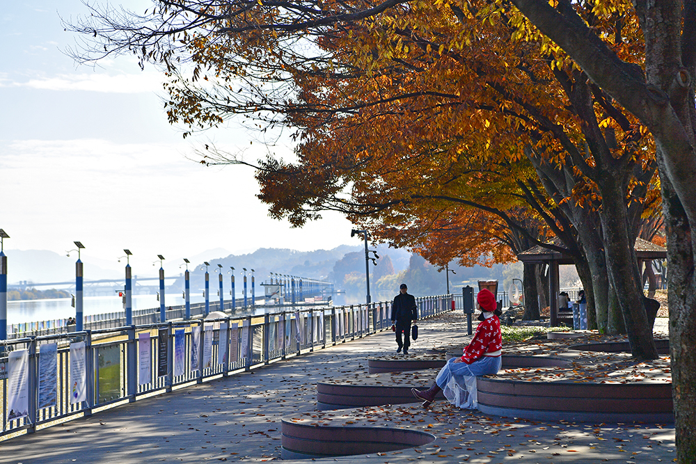 늦가을 여운이 남아있는 나무 아래에 앉아 잠시 쉬어갑니다. 공원 너머로 유유히 흐르는 남한강이 마음을 차분하게 해주는데요. 강 건너 보이는 ‘청정 삶터 물의 도시 충주’라는 문구가 이곳의 맑은 풍경과 참 잘 어울린다는 생각이 듭니다. 잔잔한 강물을 바라보며 비로소 진정한 마음의 여유를 만끽해 봅니다. ㅎ