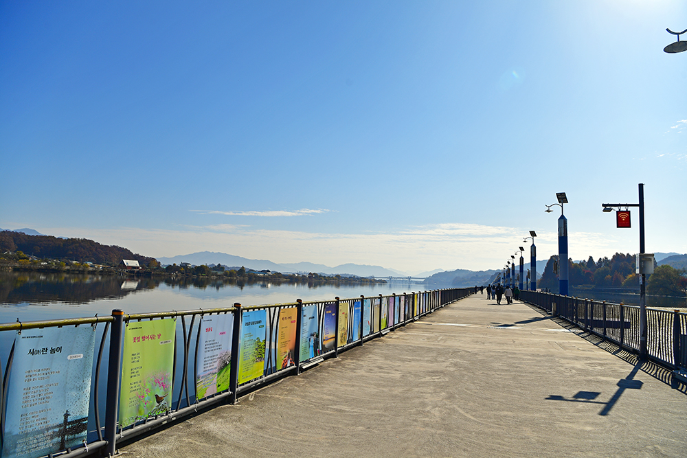 남한강변을 따라 제법 긴 산책로가 조성되어 있습니다. 끝까지 가보고 싶었지만, 시간 관계상 1km 정도만 걷다 돌아왔습니다. 산책로 중간쯤에서 마주한 ‘사랑의 불시착’ 촬영지 안내판 속 야경 사진을 보니 제법 이쁩니다. 다음 번엔 꼭 밤에 다시 찾아와 이 풍경을 직접 마주하고 싶어집니다.ㅎㅎ
