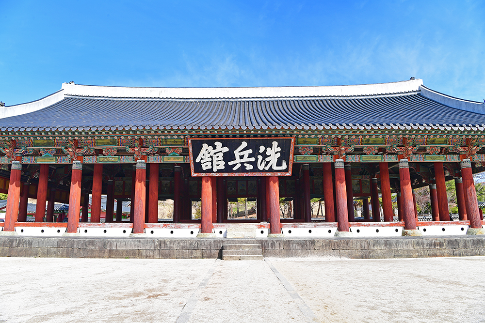 정면 9칸, 측면 5칸인 세병관의 압도적인 규모는 경복궁 경회루, 여수 진남관과 더불어 조선 시대 단일 건물 중 최대급의 바닥 면적을 자랑합니다. 신발을 벗고 광활한 대청마루에 올라서면, 사방이 막힘없이 탁 트인 거대한 공간에 압도당합니다. 나무의 질감을 느끼며 실내를 천천히 거닐다 보니, 이 너른 마루에서 삼도수군을 호령하던 통제사의 위엄이 전해지는 듯합니다.