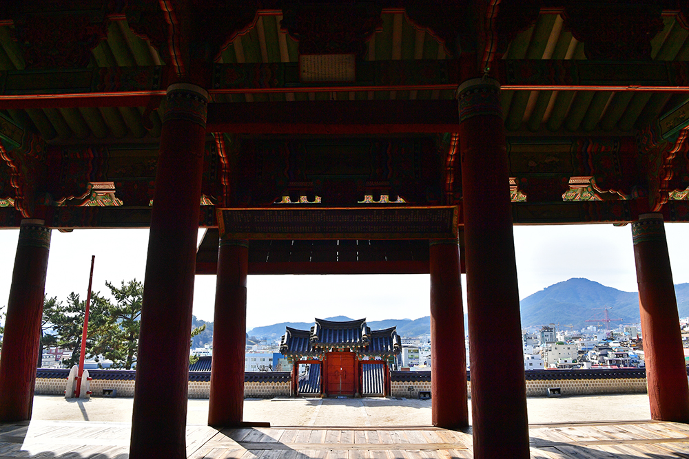 망일루를 지나 통제영으로 들어 섭니다. 왼쪽으로는 통영성을 수호하던 ‘산성청(山城廳)’ , 오른쪽에는 군무를 살피던 '좌청(左廳)'과 왜군의 항복을 받던 '수항루(受降樓)'가 반겨줍니다. 화려하진 않지만 절제된 건축물 사이를 거닐며, 삼도수군을 호령하던 통제영의 묵직한 위엄을 느껴 봅니다,