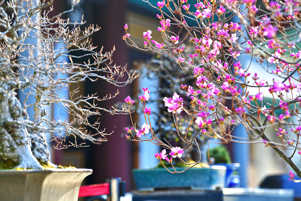 뜻밖의 아름다움과 마주했습니다. 공양간 옆, 장독대 사이로 진달래가 수줍게 피어나고 있습니다. 특히 정성스레 가꾼 분재 나무와 어우러진 모습이 너무 아름답습니다. 자장매를 놓친 진분홍의 아쉬움을, 이곳의 진분홍 진달래가 오롯이 달래주는 듯합니다. ㅎ