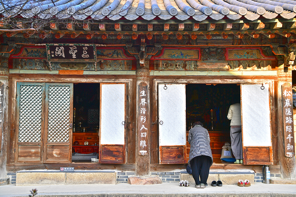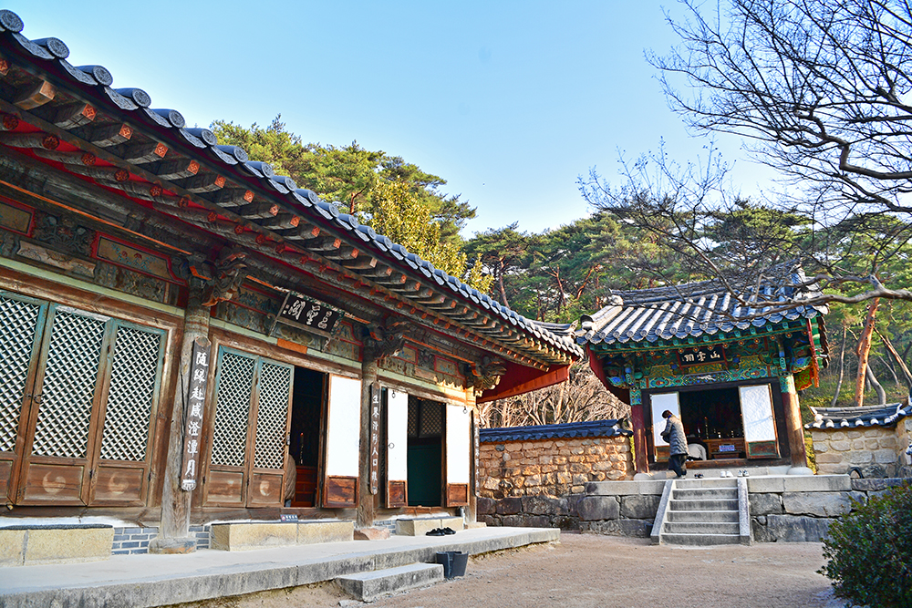 다음은 삼성각(三聖閣)입니다. 산 산신(산의 신), 칠성(북두칠성), 독성(나반존자) 세 분을 한곳에 모신 이곳은 불교가 우리 민족의 고유 신앙을 따뜻하게 품어 안은 포용의 공간이라 하겠습니다.