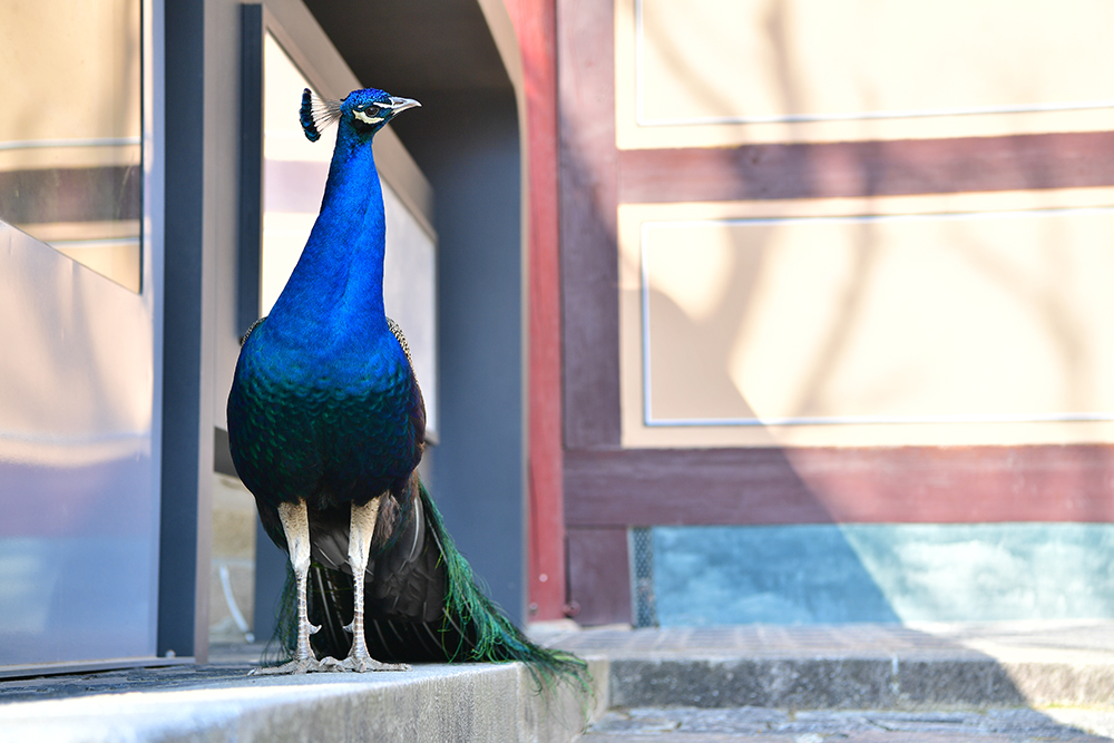 오층석탑을 끝으로 주차장으로 향하던 길입니다. 천왕문을 빠져나오는 순간, 아름다운 공작새 한 마리와 마주쳤습니다! 사찰에서 만난 공작이라니!! 처음 보는 광경에 가방에 넣었던 카메라를 급히 다시 꺼냈습니다. 화려한 꼬리를 활짝 펼쳐주길 내심 기대하며 숨을 죽이고 기다렸지만, 아쉽게도 도도한 뒷모습만 남긴 채 다음을 기약하게 하네요.ㅎ