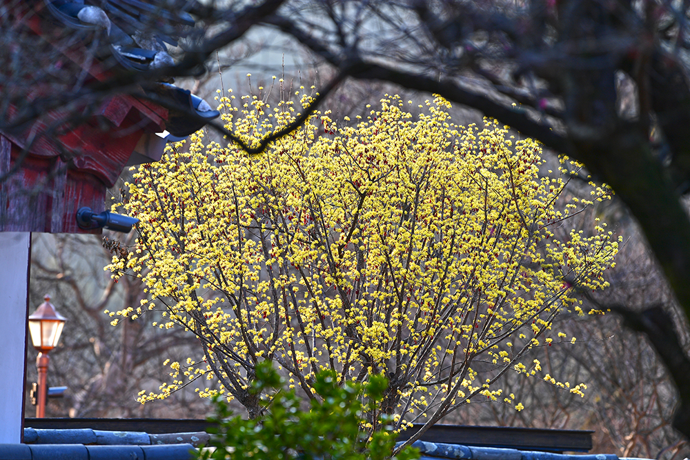 사찰 한편에는 산수유도 수줍게 노란 꽃망울을 터뜨렸습니다. 아직 만개한 상태는 아니지만, 강렬한 노란 빛은 통도사의 고즈넉한 풍경 속에서 존재감을 한껏 뽐냅니다. 봄의 전령사가 속삭이는 듯한 그 화사한 색감을 기분 좋게 담아봅니다.