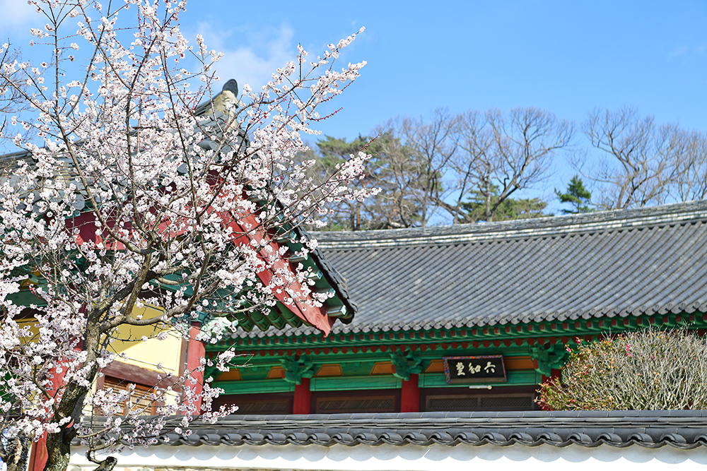 영산전 뒤편의 영각(影閣) 입니다. 역대 고승들의 영정을 모신 추모의 공간입니다. 평소엔 엄숙한 이곳이 이맘때면 유독 북적이는 이유가 있습니다. 바로 통도사의 봄을 가장 먼저 깨우는 홍매화, '자장매' 머무는 곳이기 때문입니다. 아쉽게도 조금 늦게 찾은 탓에 자장매는 내년을 기약하며 작별을 고하고 있습니다.